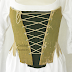 She's not done yet, as you can see, but the most challenging parts have been accomplished. The first step was the basic linen lining, with adjustable lacing at the center back, and lacing across the front of the body, which the stomacher will cover.