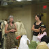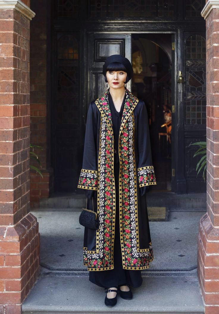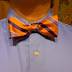 | Draping the pattern for the bodice front with robings, which will be faced and trimmed. The stomacher is pinned under there robings, which then fold back (as shown) to cover the pins. |